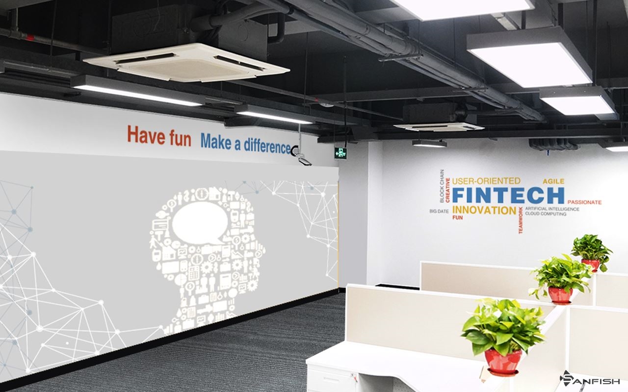 說(shuō)實(shí)話,很多廣告公司迷之喜歡用的亞克力其實(shí)非常非常費(fèi)錢,舉個(gè)例子,下面是我們給招商銀行客服總部場(chǎng)地做的其中兩個(gè)墻面: